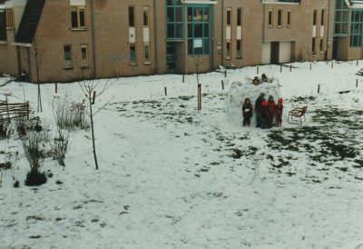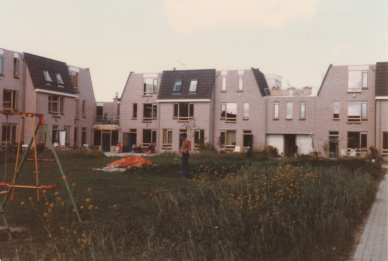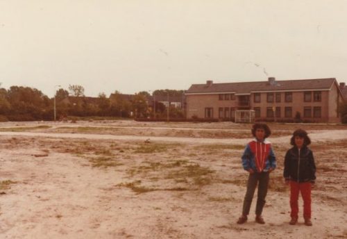1984 … Het lege terrein van het Middelblok, én twee toekomstige bewoners Achter hen zie je de Boeier, zoals die er toen nog uitzag